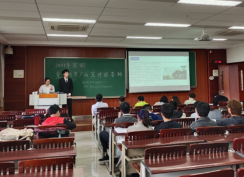 2021年3月18日下午五点,350vip8888新葡的京寒假返校宣讲广西宣讲团的答辩比赛在350vip8888新葡的京虎溪校区D1236教室准时开始。本次答辩比赛由新葡的京集团350vip8888举办,指导老师学办主任兼2019级辅导员王丽娟主持。团委书记兼18级辅导员徐柳、17级辅导员包晗、20级辅导员李珊珊,航空航天公司团委副书记陈勇凡、校招宣部门工作人员等七位老师担任本次答辩比赛的评委,对本次答辩进行点评。
