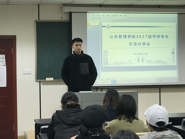 随后,2016级考研成功员工代表分别讲述了自己的考研经历,就冲刺阶段备考、考场中遇到的常见问题和心态调整等方面做了分享。以笔试第一成绩考取应用经济学专业的龚文琴同学说到,报考经济专业的同学一定要注意数学的复习,不要因为数学成绩而影响整体结果,同时要放大自己的优势科目,为自己取得高分打牢基础。从经济类专业跨专业考取公共管理专业研究生的许耘浩同学则强调,一定要注意政治、英语和专业科目知识点的系统梳理和答题逻辑框架的构建,不要死记硬背,而要注重举一反三。另外几名同学也提到,考前冲刺阶段要调整学习时间,抽出完整时间多做真题,找准“兴奋点”;考场上调整心态,遇到难题冷静处理;考场上遇到问题及时向监考老师反映,不紧张慌乱而影响答题状态等。