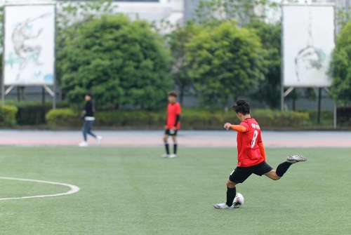 队员们不断的进攻,精准的传球,激烈的快攻,引得场边阵阵掌声;精湛的脚法、完美的盘带、犀利的射门以及精彩的配合,使得整场比赛精彩万分。任凯龙同学抓住点球的机会一举射门,为比赛赢得开门红。随后,物理弘深联队的球员们也不甘示弱,在一番观察后,迅速找到我方的弱点,高中锋倚住后卫,抓住角度的漏洞,迅速追平比分。然而,我方球员马上根据情况调整节奏弥补不足,而对方球员在尝到甜头之后却并未意识到我方的调整,频繁地通过后场长传直接找自己的高中锋,与之相对比的是我方的后防线没有慌乱,众志成城,一致向外,直到对方的后防线再一次犯错,禁区内手球,任凯龙同学再进一个点球。上半场结束,我方以2:1的优势暂时领先。