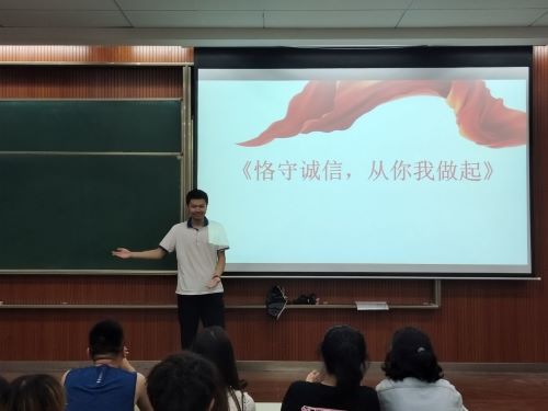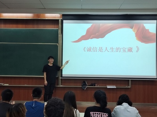 其中不乏许多优秀的参赛作品给在场的同学们留下了深刻的印象。来自19级的李荣增同学以《何为诚信》为主题,以时间为轴简述了诚信在不同时代下虽可能有不同的定义,但它的重要性是从未随时间削减的,他说道:“诚信,是我们中华民族的优良传统。千百年来,诚信之风质朴淳厚,历史越悠久,诚信之气越充盈中华,诚信之光越普照华夏。诚信早已融入我们民族文化的血液,成为文化基因中不可分割的重要一环。”而来自20级的张源苡同学则以《诚信是人生的宝藏》为题,借喻传意,他提到:“诚信,如同一轮明月,普照大地,以她的清辉驱尽人间的阴影,散发出光辉,然后依旧那么皎洁明亮。”接着,20级的何济中同学以《恪守诚信,从你我做起》为题,结合自身经历,谈起新时代青年该如何对待诚信,他说到;“诚信就像人生的楫桨,控制着人生的去向。人而无信,纵诗纶满腹,才高八斗,亦不知其可也!”同学们激情昂扬的演讲引得现场掌声连连。