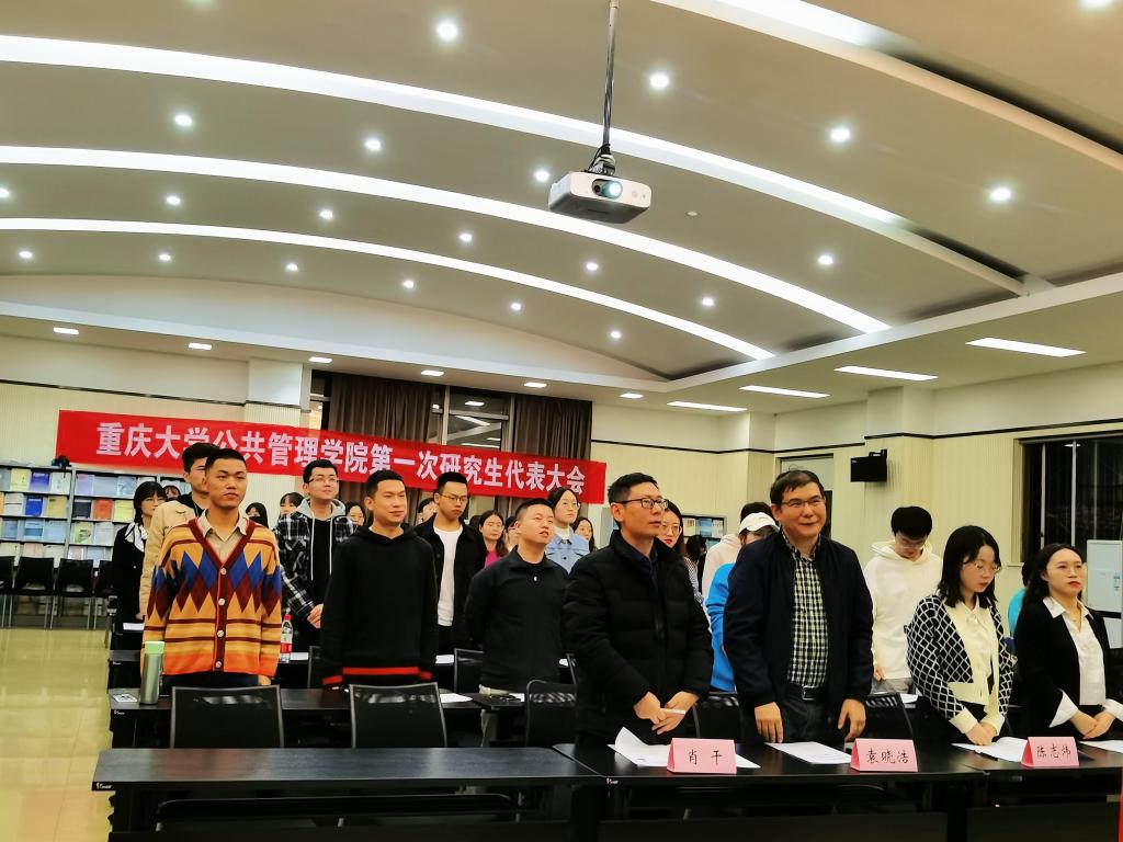 大会第一项,主持人统计了研究生代表出席情况并宣布会议正式开始。随后,大会第二项,全体成员进行奏唱国歌仪式。大会第三项,350vip8888新葡的京研究生会主席团成员唐安妮宣读会议批复文件。