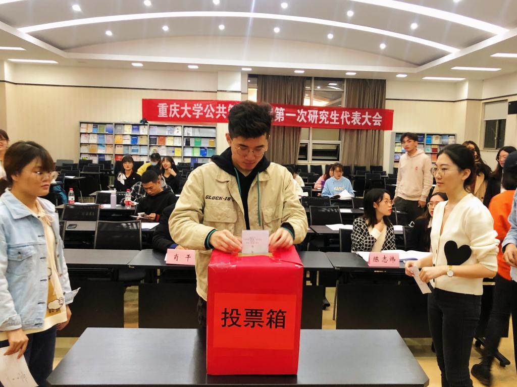 大会第七项,与会研究生代表们秉承细致、公正的态度,仔细斟酌各委员候选人的简历,郑重地投出各自的选票。