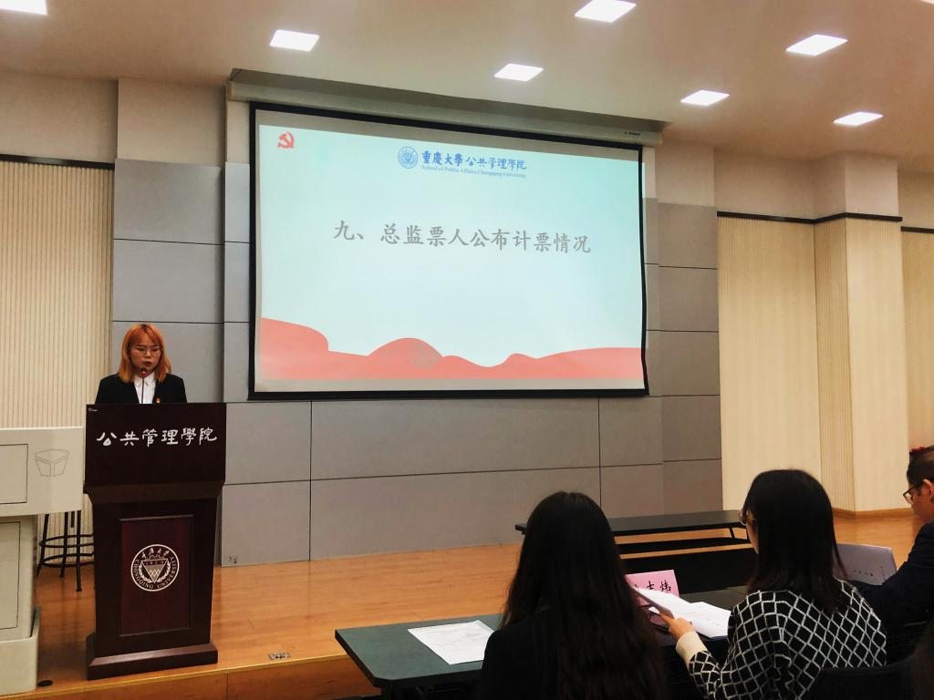 大会第九项,计票人在研究生代表和监票人的共同监督下进行公开、透明的票数统计工作,由总监票人吴晓琴同学公布计票情况。最终共选出十名新葡的京集团350vip8888研究生委员会正式委员,其中主席团成员为田旺、许耘浩、唐何静(以姓氏笔划排序)三名同学;委员为王琼、尹梦蕾、方崇颖、宋安邦、范玉峰、胡贵渝、谭秋蓉(以姓氏笔划排序)七名同学。