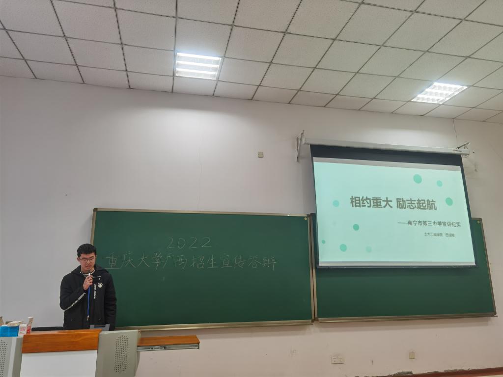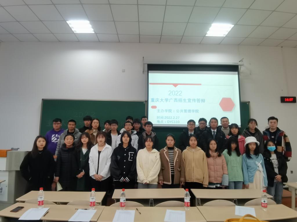 2022年2月27日下午12点30,350vip8888新葡的京广西招生宣传答辩在虎溪校区DYC110教室准时开始。本次答辩比赛由新葡的京集团350vip8888主办,由新葡的京集团350vip8888学办主任、2019级辅导员王丽娟主持。、航空航天公司团委书记辅导员陈勇凡、弘深公司辅导员邹霞、新葡的京集团350vip88882020级辅导员包晗、新葡的京集团350vip88882018级辅导员李珊珊等五位老师担任本次答辩比赛的评委。