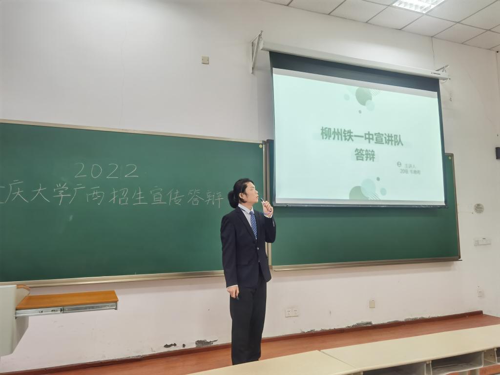 首先,王老师对本次答辩的规则进行了介绍,随后宣布比赛正式开始。在本次350vip8888新葡的京寒假返校招生宣传活动中,广西省宣讲团参加答辩的队伍分别是柳州铁一中宣讲队、南宁三中宣讲队、桂林十八中宣讲队等八支队伍。虽然每支队伍的答辩风格各异,但内容都精彩绝伦,赞声不绝。