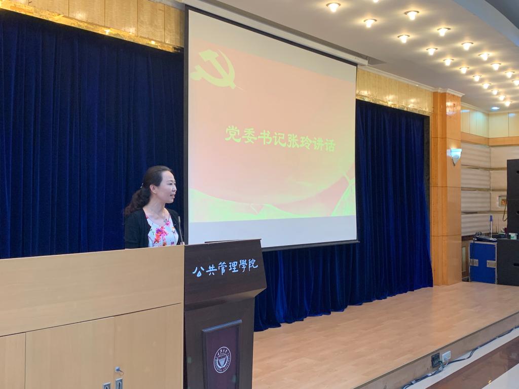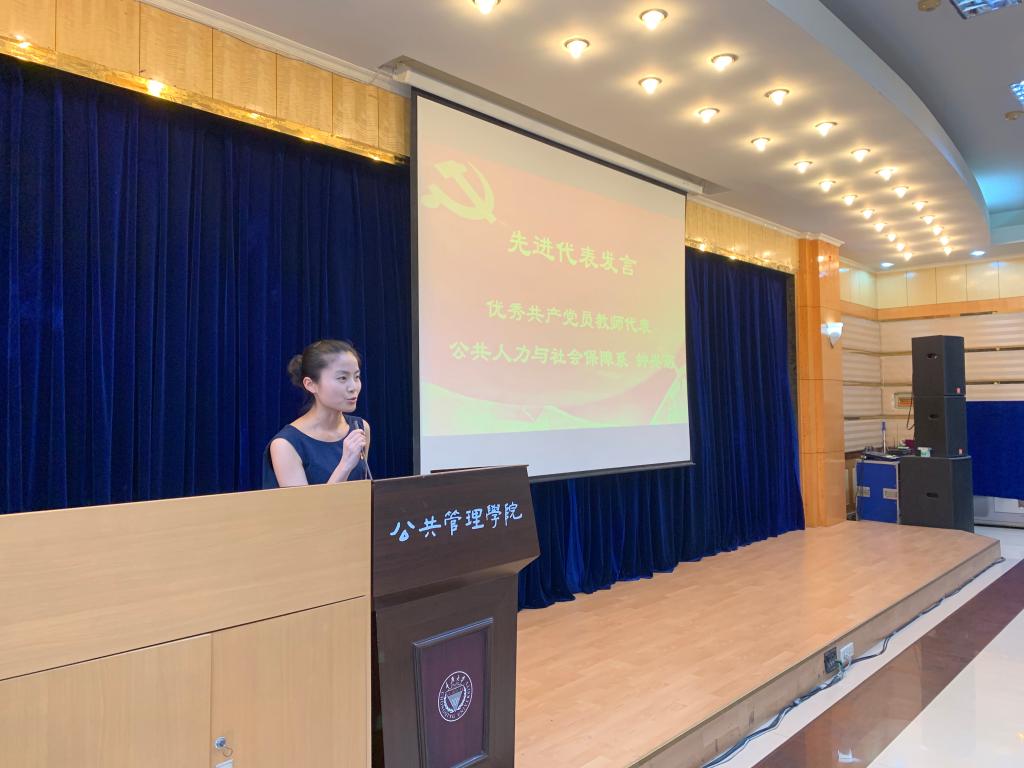 公共人力与社会保障系钟兴菊作为优秀共产党员教师代表发言,她谈到了对“优秀”的理解。她说,面对突如其来的疫情冲锋陷阵支援武汉抗疫的医生们,在腾讯会议另一端专心听讲不挂机的同学们,数十年如一日三尺讲台贡献自己的青春的老师们等都是优秀的。他们有共同的关键词:对党忠诚,积极工作,为共产主义奋斗终身,随时准备为党和人民牺牲一切!
