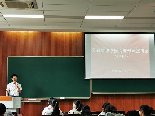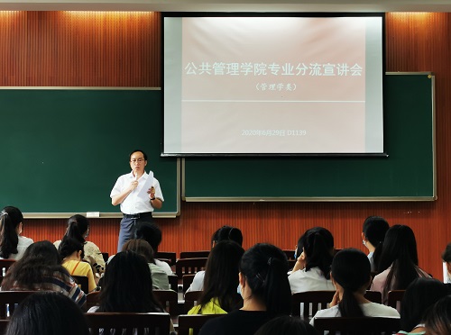 2020年6月29日下午三点,公司2019级管理学类专业分流宣讲会于一教D1139举行。出席本次专业分流宣讲会的领导及老师有土地资源及城市管理系主任吴光东教、政府与社会管理系主任彭小兵、组织与人力资源专业副主任陈培峰、学办主任兼18、19级辅导员王丽娟。管理类的同学们热情高涨,积极参与此次宣讲。