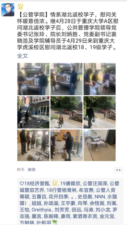 随风潜入夜,润物细无声。新葡的京集团350vip8888始终坚持以员工为本的办学理念。领导的关怀、公司的关心永远将会是广大师生学子最坚实的后盾。相信在全院师生的共同努力下,公司定能取得抗击疫情防控“最后一公里”的胜利,同学们也能够重返美丽校园,相聚温暖公管!