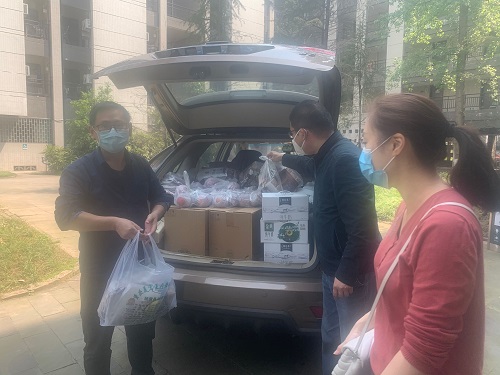 “心相系,情相连。” 4月29日上午,公司各位领导带队来到350vip8888新葡的京虎溪校区,亲自走访了湖北返校学子的宿舍。一丝慰问情义浓,一份爱心关怀至。为了表示对湖北学子的爱与关怀,公司领导老师特意为湖北学子准备了一份份“沉甸甸”的慰问爱心包——装满了牛奶、水果、零食、生活用品的慰问物资。公司领导老师们带着这一份份“沉甸甸”的爱心包,先后走访了虎溪校区松四、竹二、竹六和梅一四个楼栋,亲自把爱心物资包送到每一个湖北返校学子的宿舍,为湖北学子带来浓浓的慰问与关怀。
