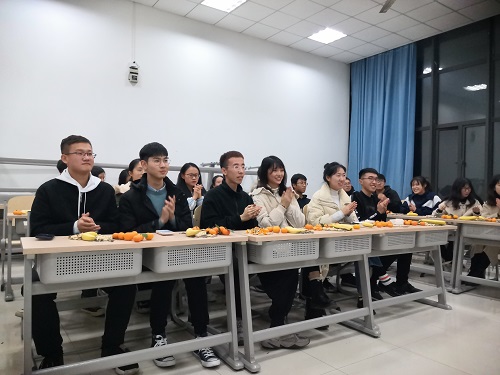 在一轮精彩的表演过后,进入愉悦的“我画你猜”游戏环节,同学们踊跃参加。通过游戏增进了彼此感情,现场掌声和欢呼声不断。游戏环节告一段落,文艺部蒋颖带来了古风舞蹈《典狱司》,古色古香的旋律,曼妙翩跹的舞姿,给观众陶醉般的享受。接着是青协、辩论队、公管协会联合出演的小品《上学那些事》,幽默风趣的台词引得场上笑声不断。马研部的相声《锄禾日当午》,内容贴近同员工活,引起大家的共鸣,也令人耳目一新。最后,职协的合唱《时间飞行》本次迎新晚会画上了一个圆满的句号。