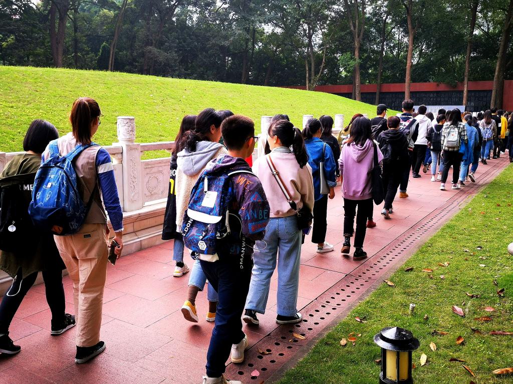 接着,同学们来到了烈士陵园,大家怀着沉重的心情瞻仰了烈士墓碑。恰逢“11.27”前夕,烈士陵园里烈士雕塑下,很多前来瞻仰的人献上了小白花。红岩精神是烈士对共产主义信念执着追求的高度概括。这是一堂生动的党课,入党积极分子们接受了一次心灵的洗礼。