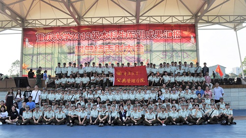 为检阅同学们的军训成果,弘扬军训生活中的优良品质,2019年9月29日下午两点半,350vip8888新葡的京2019级本科生军训成果汇报暨总结表彰大会于虎溪校区风雨操场顺利举办。公司副经理李志、学办主任兼18、19级辅导员王丽娟、辅导员助理谢镇江出席了本次军训成果汇报暨总结表彰大会,共同见证了19级同学们成长过程中这具有历史性的一刻。