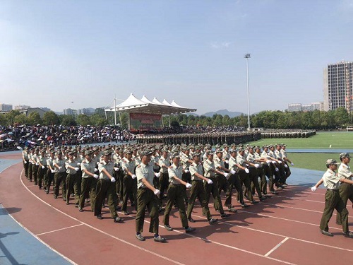 之后还汇演了精彩绝伦的应急棍术、盾牌术,军乐连与合唱团也献上了歌颂祖国的赞歌。本次军训汇演在送师旗环节中进入尾声,与教官再难忘的相遇,终究也会别离,在一声声道别的军中柔情中,看台上的观众竟也不觉泪目。随后齐唱校歌,本次军训汇演在“复兴民族兮,誓作前锋!”的旋律中落下帷幕。在一系列表彰结束后,新葡的京集团350vip8888组织了19级全体同学于主席台进行了合照,以纪念这一难忘的历程。