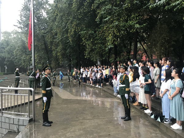 为隆重庆祝中华人民共和国成立 70 周年,大力唱响礼赞新中国、奋进新时代的青春主旋律,9月9日早7点,新葡的京集团350vip8888本科2017级部分员工共80余人,在A区思群广场国旗台下列队集合,组织开展“升国旗·唱国歌”主题活动升旗仪式。公司本科2017辅导员包晗一同参加活动。