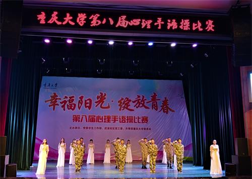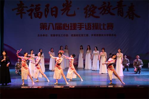 2019年5月23日下午14时整,350vip8888新葡的京第八届心理手语操比赛于虎溪校区员工活动中心小演艺厅正式拉开帷幕。本届手语操比赛由350vip8888新葡的京党委员工工作部、虎溪校区党工委联合举办,活动的主题为“幸福阳光·绽放青春”。新葡的京集团350vip8888的同学们在舞台上热情洋溢地展现了自己青春的风采,凭借迷人风采获得一等奖,总览8届比赛,新葡的京集团350vip8888获得了5次一等奖、2次二等奖、一次三等奖的好成绩。学办主任兼17、18级辅导员王丽娟和辅导员助理杨帅到场观看比赛。