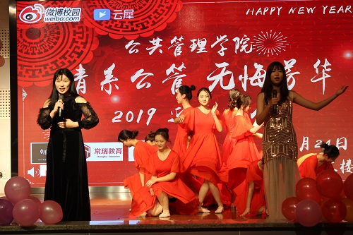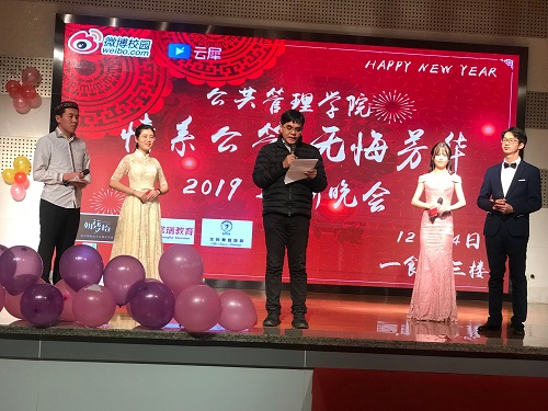 晚会伊始,在主持人介绍完到场的来宾之后,同学们以一个极具活力的开场歌舞表演正式宣告了晚会的开始。此后,刘炳胜经理向大家做了亲切的新年致辞。刘经理表示,在过去的一年中,公管人通过自己不懈的努力,创造了一个又一个的辉煌,取得了无数的鲜花和荣誉。而在接下来的2019年中,公管人必将再接再厉,以更饱满的精神和更昂扬的斗志,把公司建设得更加卓越。在致辞的最后,刘经理引用古诗“潮平两岸阔,风正一帆悬”向大家寄予了新年的问候与期盼。他说:“我们公管人会扬起风帆,聚力前行。愿全体公管师生在2019不忘初心,砥砺前行,再谱华章。”