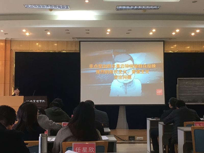 2018年11月15日下午2点半,委组织全体教职员工在公司多功能厅参加政治学习。公司党委委员蒲艳萍教授为大家讲授“集中整治形式主义官僚主义”专题党课。公司全体教职员工参加学习。公司党委书记张邦辉主持学习。