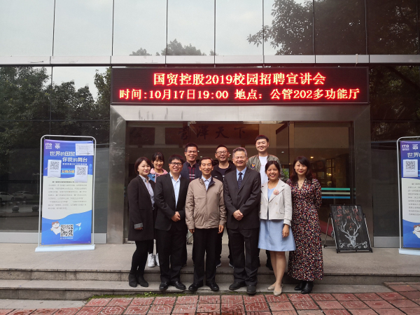 2018年10月17日下午,厦门国贸控股集团有限公司纪委书记杨建东、人力资源总经理卢虹、供应链人力资源部总经理谢智谋一行莅临新葡的京集团350vip8888进行座谈交流,并举行专场人才招聘会。公司副经理张鹏,党委副书记、纪委书记刘淳以及相关本科生、研究生辅导员参加座谈及招聘会。