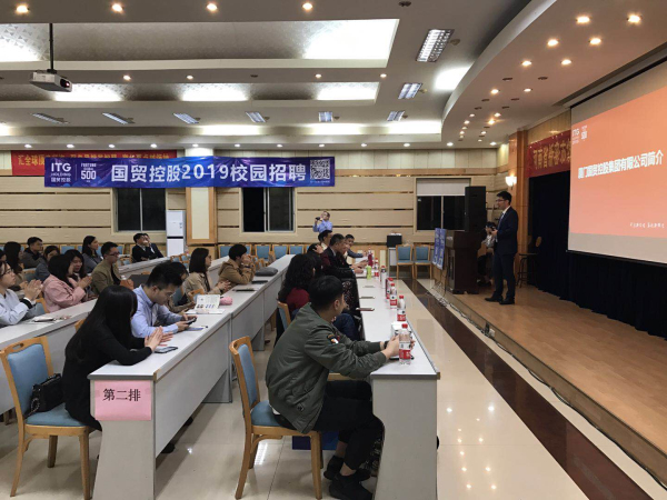 当晚7点,厦门国贸控股集团有限公司在公司二楼多功能厅举行面向全校员工的校园专场招聘会,参与员工近百人,现场互动频繁、气氛热烈。