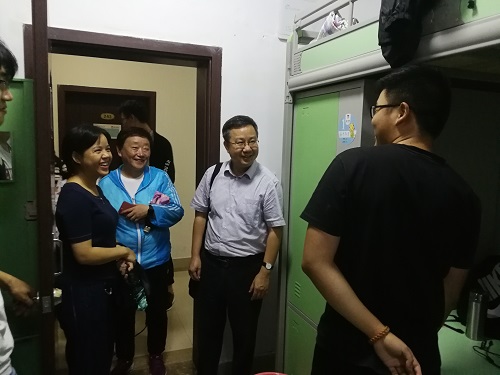 2018年9月7日晚上七点,新葡的京集团350vip8888党委书记张邦辉,党委副书记刘淳、学办主任兼17、18级辅导员王丽娟、团委书记兼16级辅导员徐柳、15级辅导员包晗等领导、老师一同来到员工住宿区竹二宿舍楼和松四宿舍楼,对17、18级员工看望慰问,尤其是对全体新生送去亲人父母般的关怀。