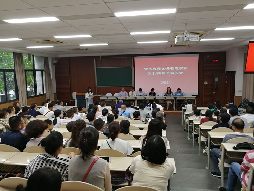 在接下来的家长的提问环节中,家长将心中的疑惑与院领导进行交流。今年家长担心的问题与往年不尽相同,家长们就考研保研、毕业就业去向、员工活动等问题与院领导展开了深入交流。李志和丁从明老师分别对公共管理和经济学的专业信息和学科设置作出了说明。刘淳副书记、学办主任兼17.18级的辅导员王丽娟、教务办主任朱宇、院团委书记徐柳介绍了丰富的管理员工经验和教学成果,并回答了大学期间规划和就业去向的问题。