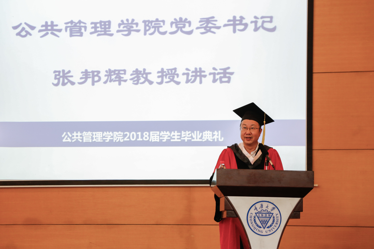委书记、MPA教育中心主任张邦辉教授发表讲话。他说到,回首过去的这几年,公司和同学们共同成长,同学们拥有了精彩纷呈、可圈可点的大学经历,公司也取得了显著的发展和进步,公管师生勠力同心,深刻诠释了“尚道至公,管泽天下”的宗旨与理想。他在讲话中叮咛全体毕业生,在未来的征途中,要能够学习生活、认识生活,始终持有一颗追求真理的心,更坦然、更从容、更笃定;要能够探索生活、体验生活,在有趣的探索中体验,在丰富的体验中生活;还要能够创造生活、改变生活,让我们的“小生活”更美好健康、更富有诗意、更具品质和品位。毕业纸短,公管情长。母校,随时欢迎大家回来!