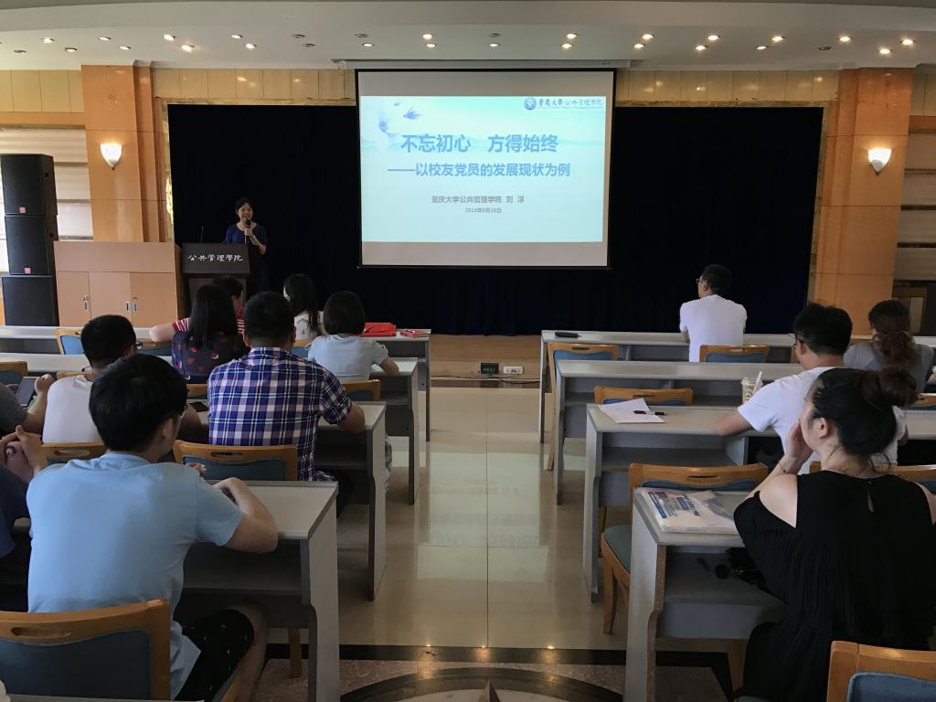 然后,刘淳为全体同志上了毕业前最后一堂党课,题目为“不忘初心、方得始终——以员工党员的发展现状为例”。她借走访慰问员工的契机,梳理了部分员工党员的学习经历和工作情况,并深情回忆了他们在校读书期间的点点滴滴,和大家分享了他们的成长故事与心得。她介绍到,公司毕业生很多都走上了公务员、选调生、银行和地产等行业的工作岗位,其中的党员同学都有不错的发展,希望大家能以他们为榜样,提高觉悟、以身作则,努力学习、艰苦奋斗,为自己、为公司、为社会做出一名共产党员应有的贡献。她祝愿大家都能前程似锦、一切顺利。
