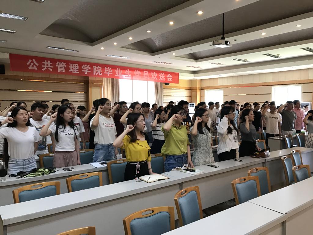 欢送会伊始,刘淳带领全体毕业生党员重温入党誓词。铿锵有力的誓词进一步强化了同志们的党员意识,鼓励大家在今后的学习、工作中坚持立足岗位、争先创优。