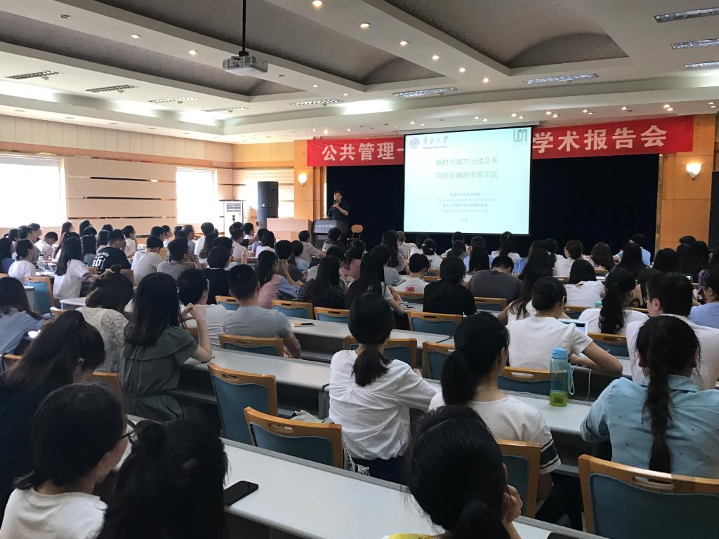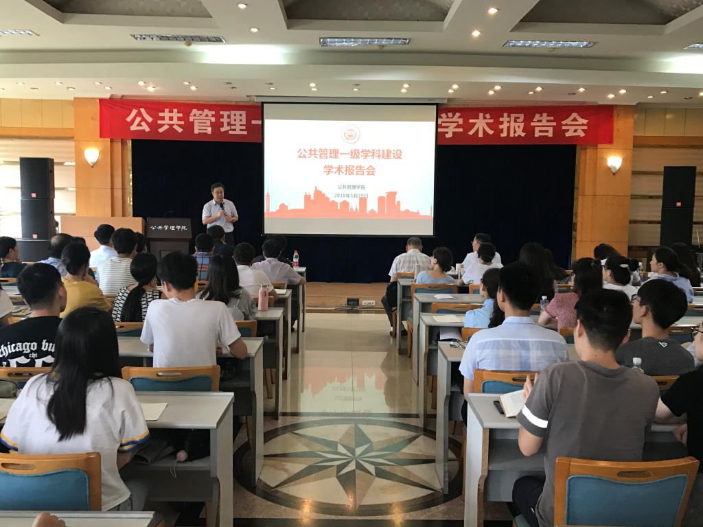 2018年5月19日下午,新葡的京集团350vip8888在二楼多功能厅举办公共管理一级团队建设学术报告会。国务院学科评议组成员、全国MPA教指委委员、华中科技大学新葡的京集团350vip8888徐晓林教授,国务院学科评议组成员、南京农业大学新葡的京集团350vip8888欧名豪教授,国务院学科评议组成员、华东师范大学新葡的京集团350vip8888吴志华教授,全国MPA教指委委员、南开大学周恩来政府管理公司经理孙涛教授,全国MPA教指委委员、四川大学委书记姜晓萍教授五位专家出席报告会。350vip8888新葡的京委书记兼常务副经理张邦辉教授主持报告会,公司班子成员、部分教师和员工近200人参加报告会。