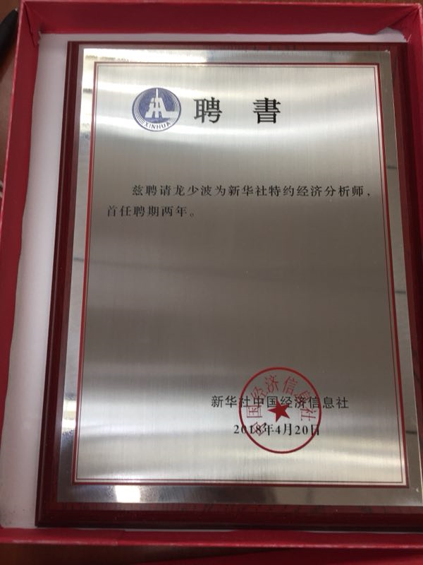 近日,龙少波副教授受聘新华社特约经济分析师,首任聘期两年。在聘期间,特约经济分析师将发挥专业指导和专家顾问作用,支持新华社经济信息服务工作。包括接受新华社中国经济信息社的相关采访,参与相关课题研究、调研报告撰写,参与其组织的经济形势研讨会、主题论坛、联合调研及专业培训等活动,提供智力支持。