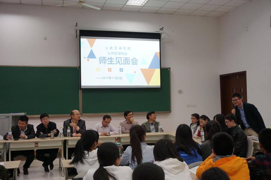 会议伊始,陈永进教授首先介绍了公共管理专业的历史沿革,它承自于20世纪40年代重大法公司的政治系。其他老师也就有关问题进行说明,随后,会议进行到主要环节,以师生问答的形式解决同学们的问题与疑惑。