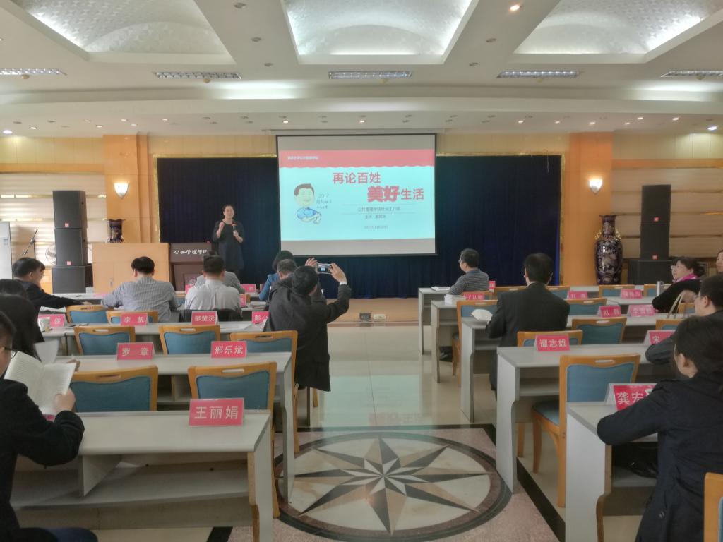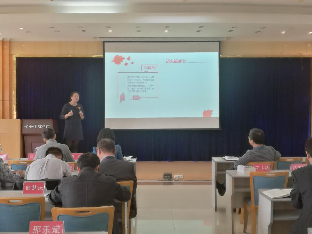 2017年11月9日下午3点半,委组织公司全体教师在多功能厅进行专题学习,深入学习党的十九大报告。本次学习由公司党委书记兼常务副经理张邦辉主持,由社会工作系郭英慧老师主讲。