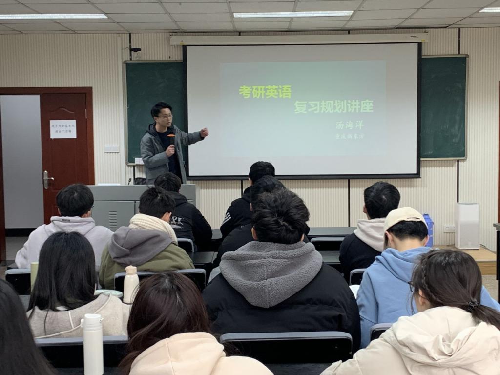 此次活动由新葡的京集团350vip8888本科生一支部书记王丽娟同志主持,邀请了汤海洋老师来做考研英语复习规划讲座。公司2019级本科生积极报名,踊跃参加此次讲座。
