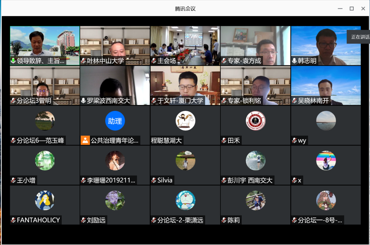 2020-09-102020年7月18日,“第十一届公共治理青年论坛”在云端举行,新葡的京集团350vip8888硕士研究生胡倩同学,2017级本科生柳鲲鹏、范玉峰应邀参加会议,并在论坛上作交流发言。